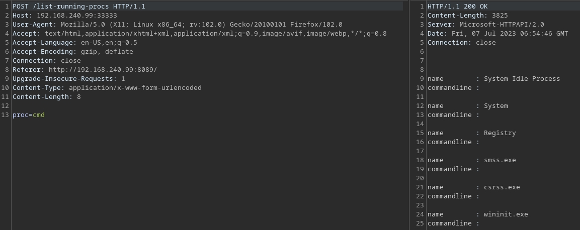 This was different from the Not Found errors. I changed around the directory it sent requests to, and the list-running-procs